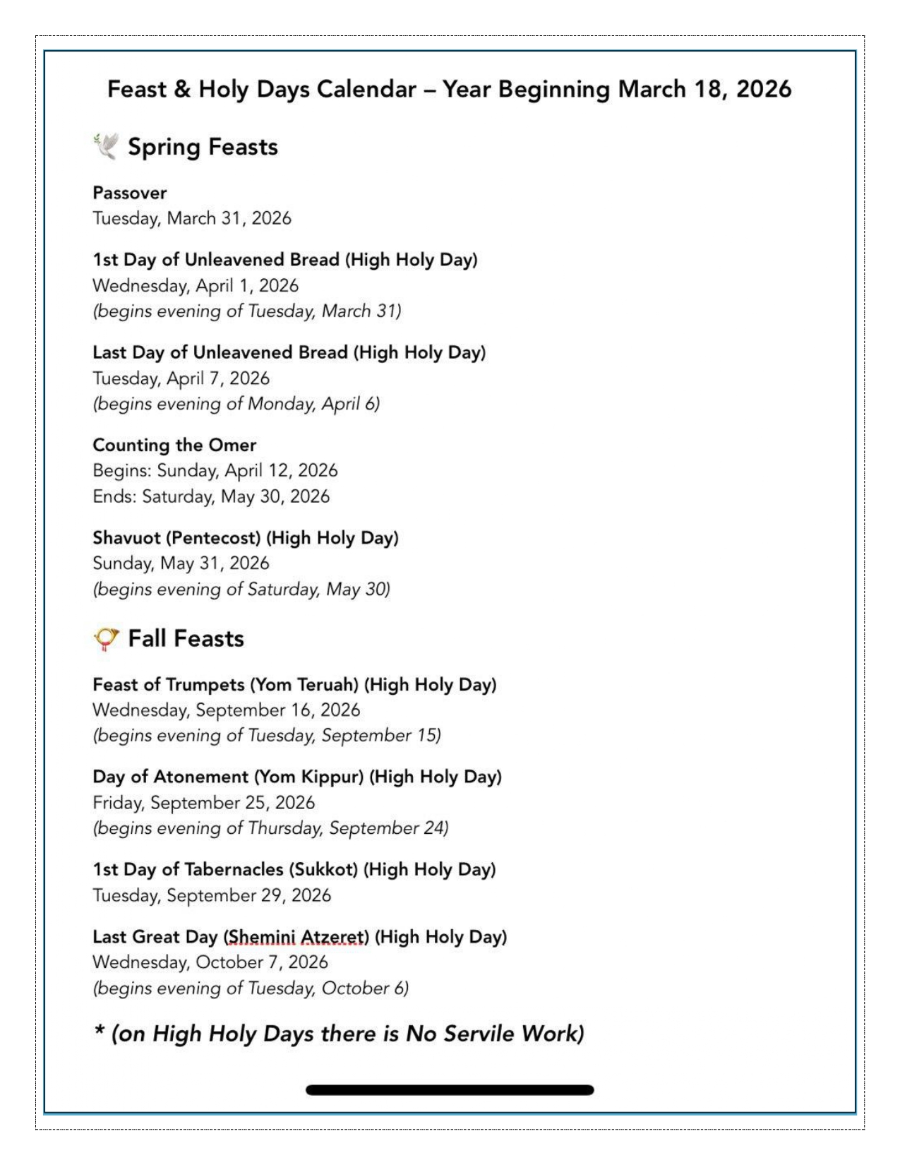 2026 Holy Days