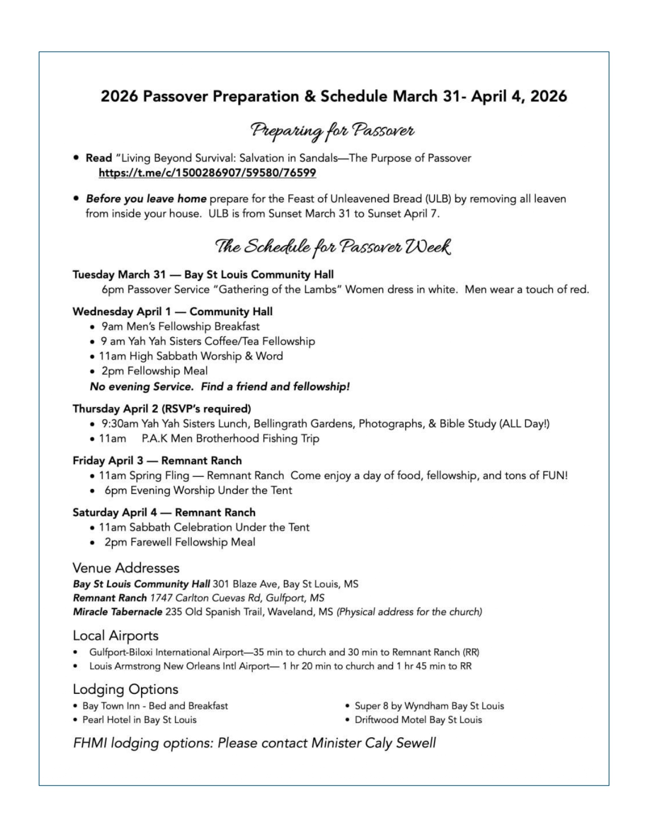 Feast Of Passover 2026 Event